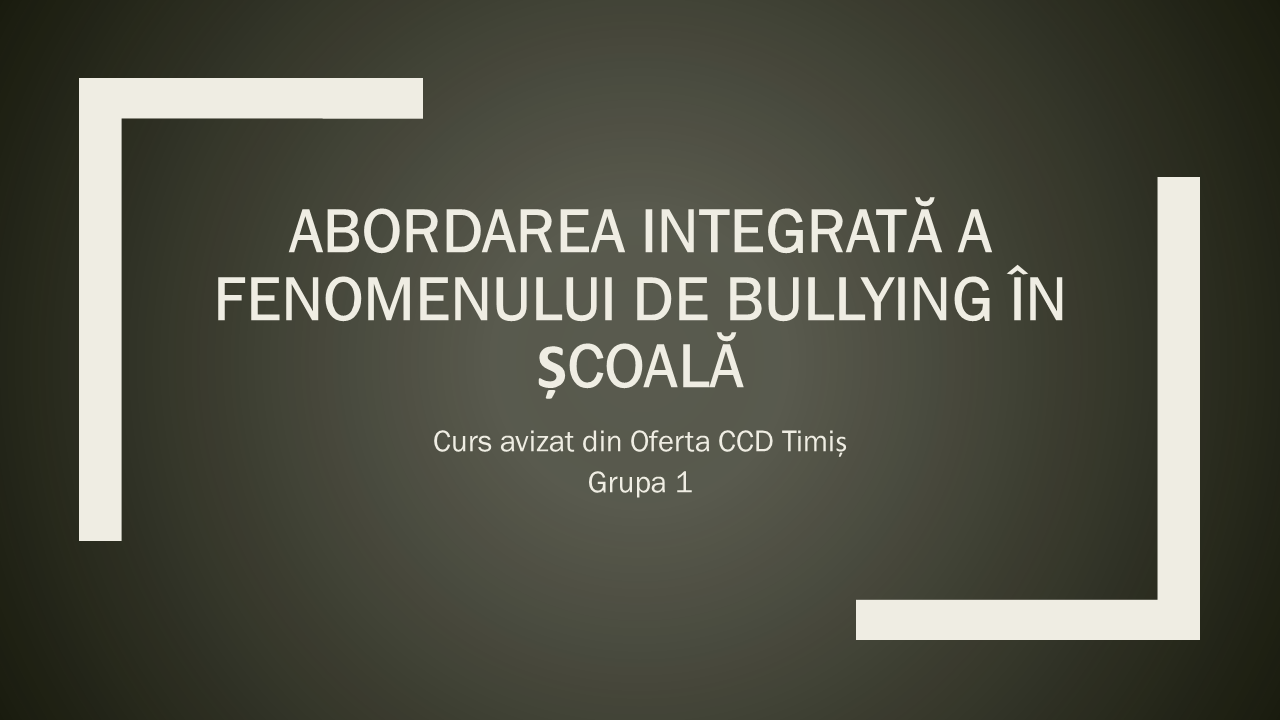 Abordarea integrată a fenomenului de bullying în școală. Grupa 1