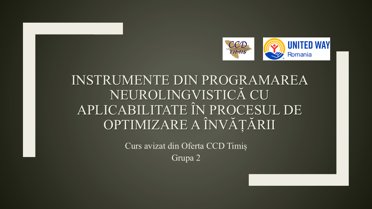 Instrumente din programarea neurolingvistică cu aplicabilitate în procesul de optimizare a învățării, Grupa 2